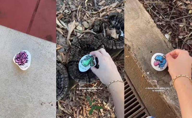Uma estudante do curso de design de produto da Unesp de Bauru (SP) viralizou nas redes sociais ao espalhar pedras de jardim customizadas pelo campus da universidade.
