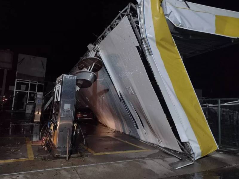 O temporal com granizo que atingiu Pirassununga (SP), na noite de sábado (9), destelhou muitas casas, derrubou árvores e deixou muitos bairros sem energia elétrica e internet. Um morador flagrou a força da chuva em um posto de combustíveis.