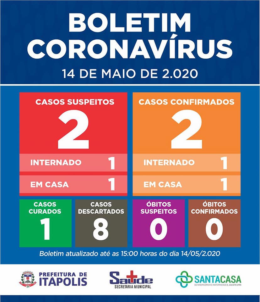 Boletim deste dia 14 confirmous 2 casos confirmados e 2 suspeitos.