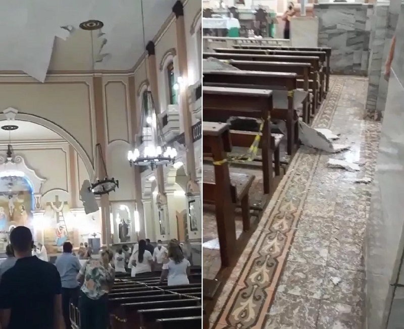 Forro de igreja desaba e deixa idosa ferida em Cândido Mota