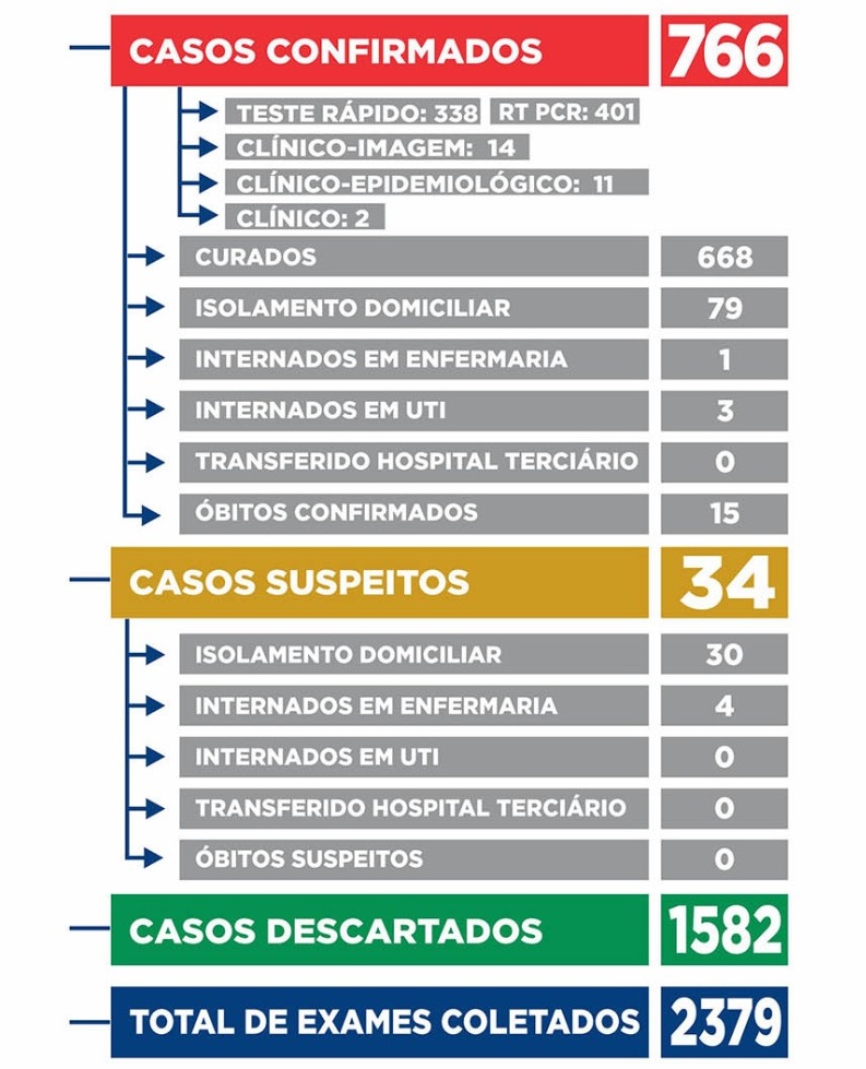 A Secretaria de Saúde de Itápolis informa que, até domingo, 3, Itápolis estava com 766 casos de COVID-19, 3 deles internados na UTI. Confira o relatório.