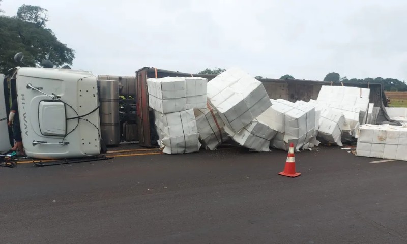 De acordo com a Polícia Rodoviária, o acidente foi registrado próximo ao quilômetro 447. O motorista relatou aos policiais que, ao fazer a curva da alça de acesso, perdeu o controle do veículo e tombou o caminhão, que tinha placas de Colombo (PR).