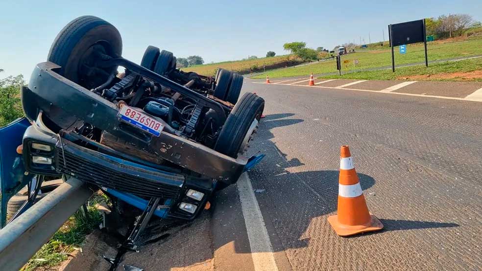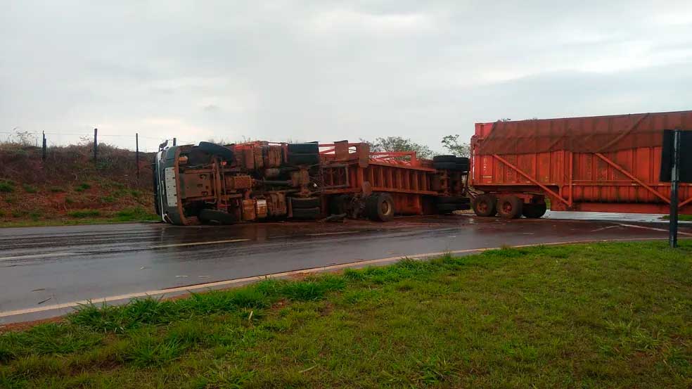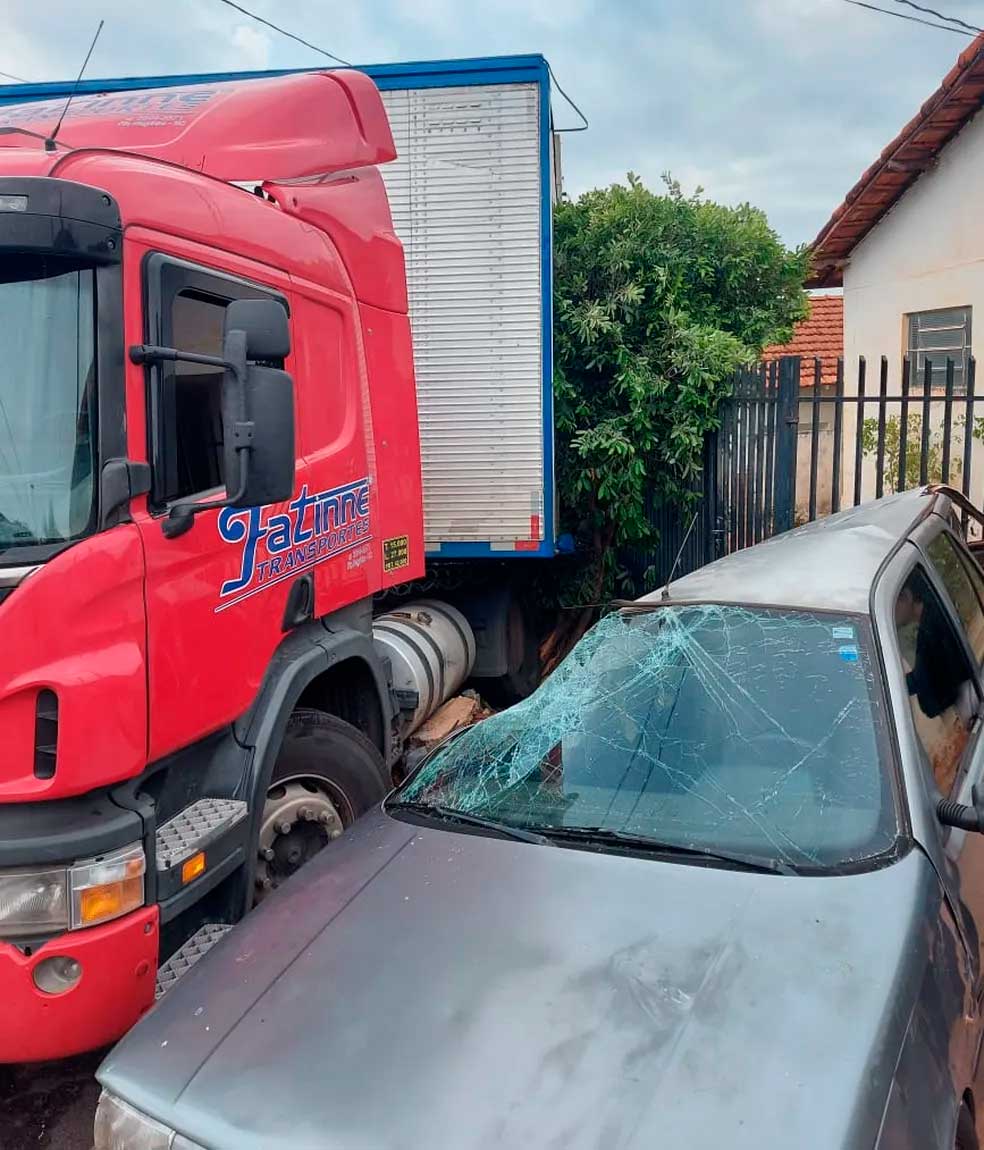 Após perder freio, carreta se envolve em batida com outros três carros e destrói casas em Ibitinga