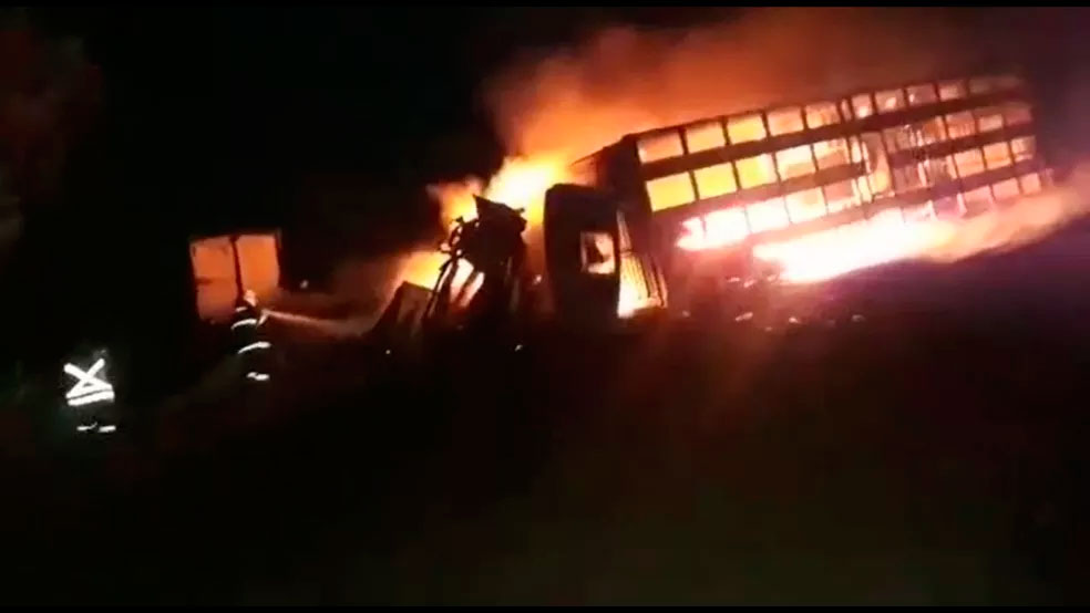Motorista e bois morrem carbonizados após colisão entre caminhões em Igaraçu do Tietê
