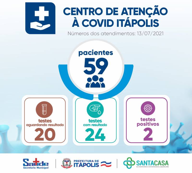 A Prefeitura de Itápolis, Santa Casa e Secretaria de Saúde divulgam os números dos atendimentos do dia 13 de julho de 2021, para garantir a transparência dos serviços prestados no Centro de Atenção à Covid de Itápolis.