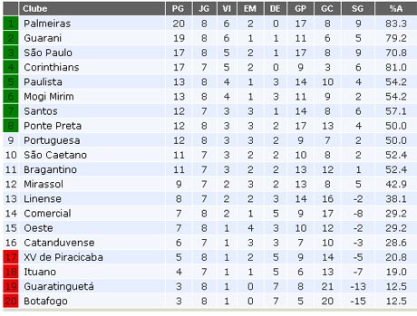 Veja tabela de classificação