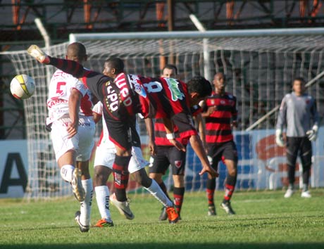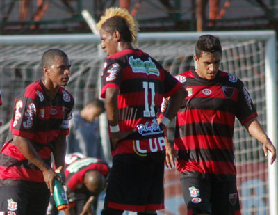 O Rubrão, então, foi pra cima e descontou com Mazzinho, gom um belo chute da meia lua no ângulo direito aos 22 minutos (Foto) e empatou com Sérginho aos 25 minutos.