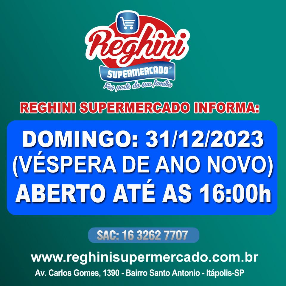 Véspera de ano novo: Reghini Supermercado aberto até as 16:00h
