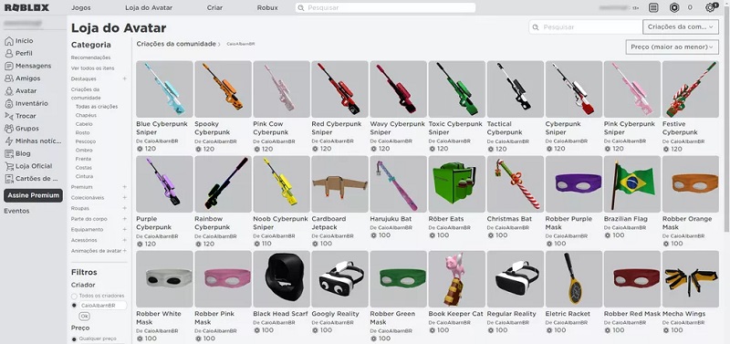 Com cerca de 30% do lucro da venda dos itens, que têm preços entre 20 e 200 Robux, a designer consegue se dedicar exclusivamente ao desenvolvimento e à pós-graduação em produção artística.